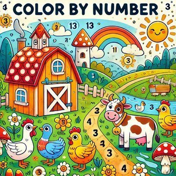 Engage young learners with this Color by Number activity book featuring adorable farm animals and vibrant farm scenes! Perfect for kids ages 3-7, this book encourages creativity while improving number recognition and fine motor skills.